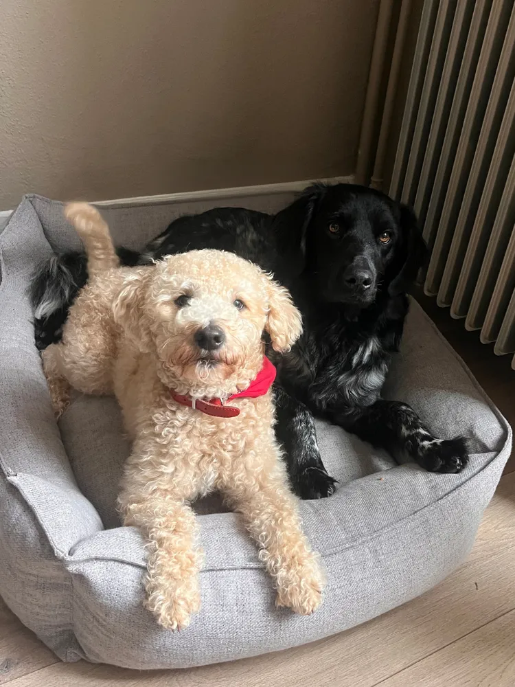 Dat is mooi, want we hebben twee honden die van knuffelen houden.